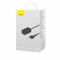 INCARCATOR retea Baseus GaN3 Pro- Quick Charge 65W- 2 x USB- 2 x USB Type-C- include cablu USB Type-C la USB Type-C 100W 1m- neg
